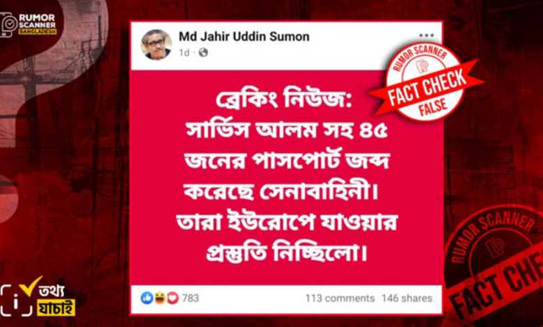 Read More »সম্প্রতি, ‘সারজিস আলমসহ ৪৫ জনের পাসপোর্ট জব্দ করেছে সেনাবাহিনী। তারা ইউরোপে যাওয়ার প্রস্তুতি নিচ্ছিলেন।’ শীর্ষক একটি তথ্য সামাজিক যোগাযোগমাধ্যমে ছড়িয়ে…